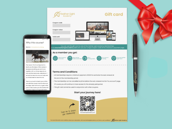 The Gift Card is the perfect gift for any horse lover who wants to improve his or her horsemanship skills. Or just wants to enjoy and get inspired by over 335 training videos which totals over 75 hours of training.